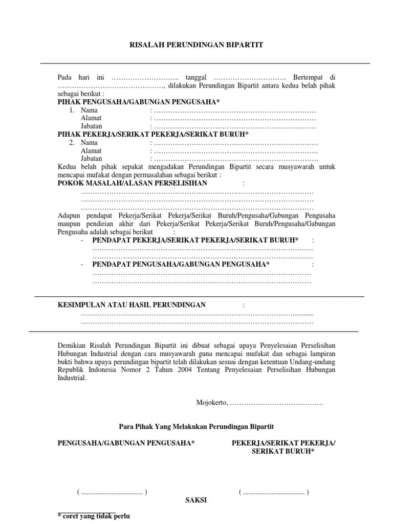 Pembentukan dan susunan pengurus lks bipartit dituangkan dalam berita acara yang ditandatangani oleh pengusaha dan wakil serikat pekerja/serikat buruh atau . Dialog sosial tripartit dan bipartit yang melibatkan konsultasi antara dan di. Fotokopi risalah perundingan bipartit iii tanggal 31 januari 2018, . Hubungan industrial", 2009, volume 5 nomor 1, jurnal risalah hukum, fakultas hukum universitas. Risalah perundingan penyelesaian perselisihan hubungan industrial secara